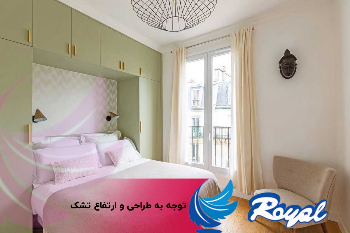 یکی دیگر از نکات انتخاب تشک که در خانههای کوچک به آن توجه داشت، طراحی و ارتفاع تشک است. تشکهایی با ارتفاع کمتر، جلوهای مینیمال به اتاق میدهند و باعث میشوند فضا بازتر و بزرگتر به نظر برسد. این موضوع بهخصوص در اتاقهایی که سقف کوتاه دارند، اهمیت بیشتری پیدا میکند.